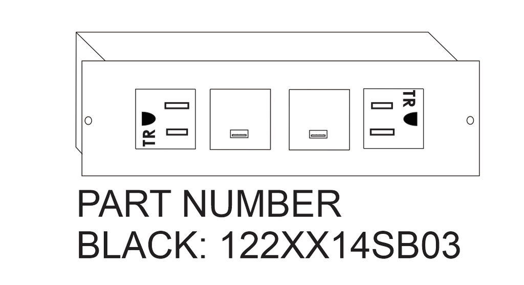 122UU14SB03 - 2 Power (1 At Each End), 2 USB-A Ports (Centered)